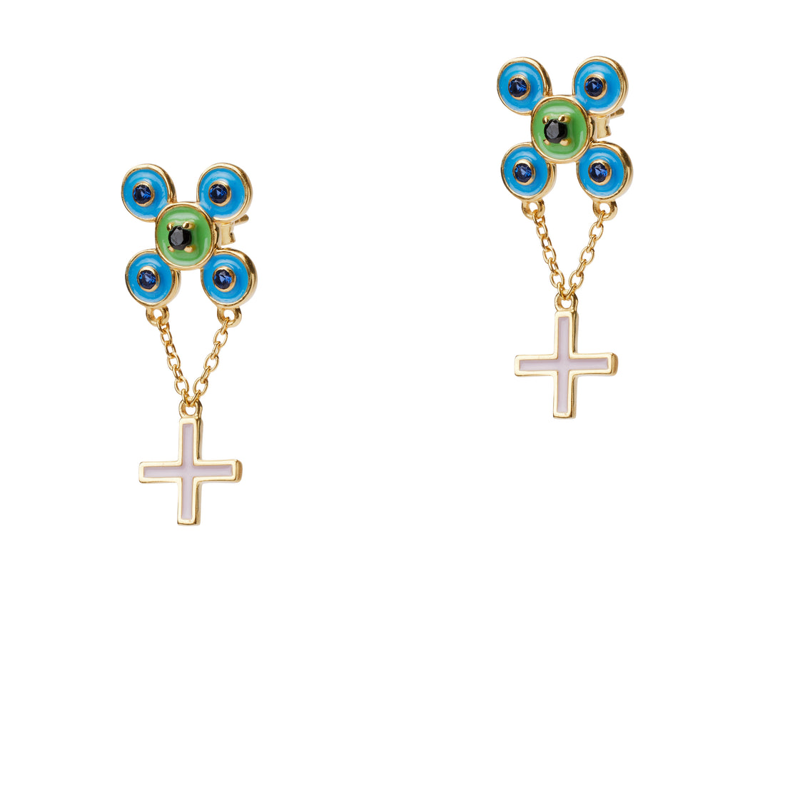 Rainbow Daisy Charm on Rainbow Pave Huggie Set