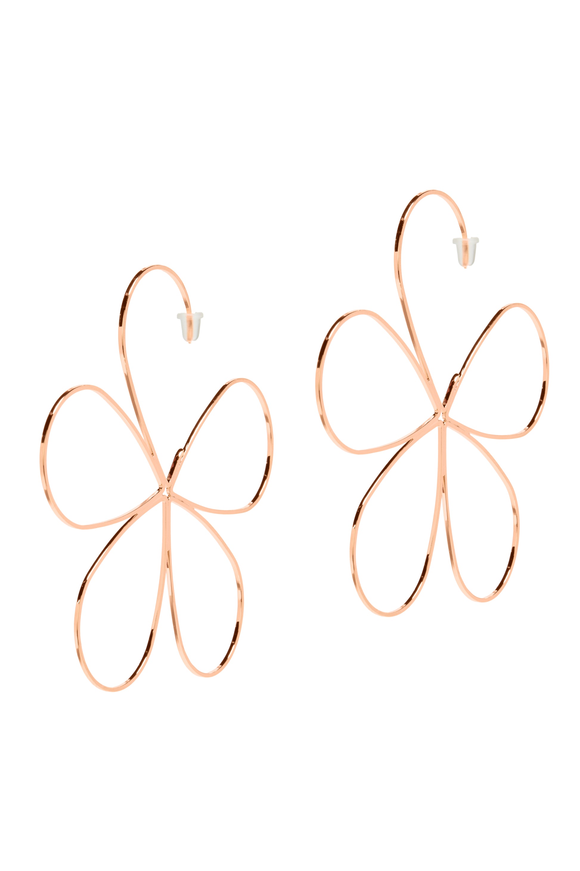Available in 14k gold, rose or silver plating over copper. 3''L x 3''W. For pierced ears.