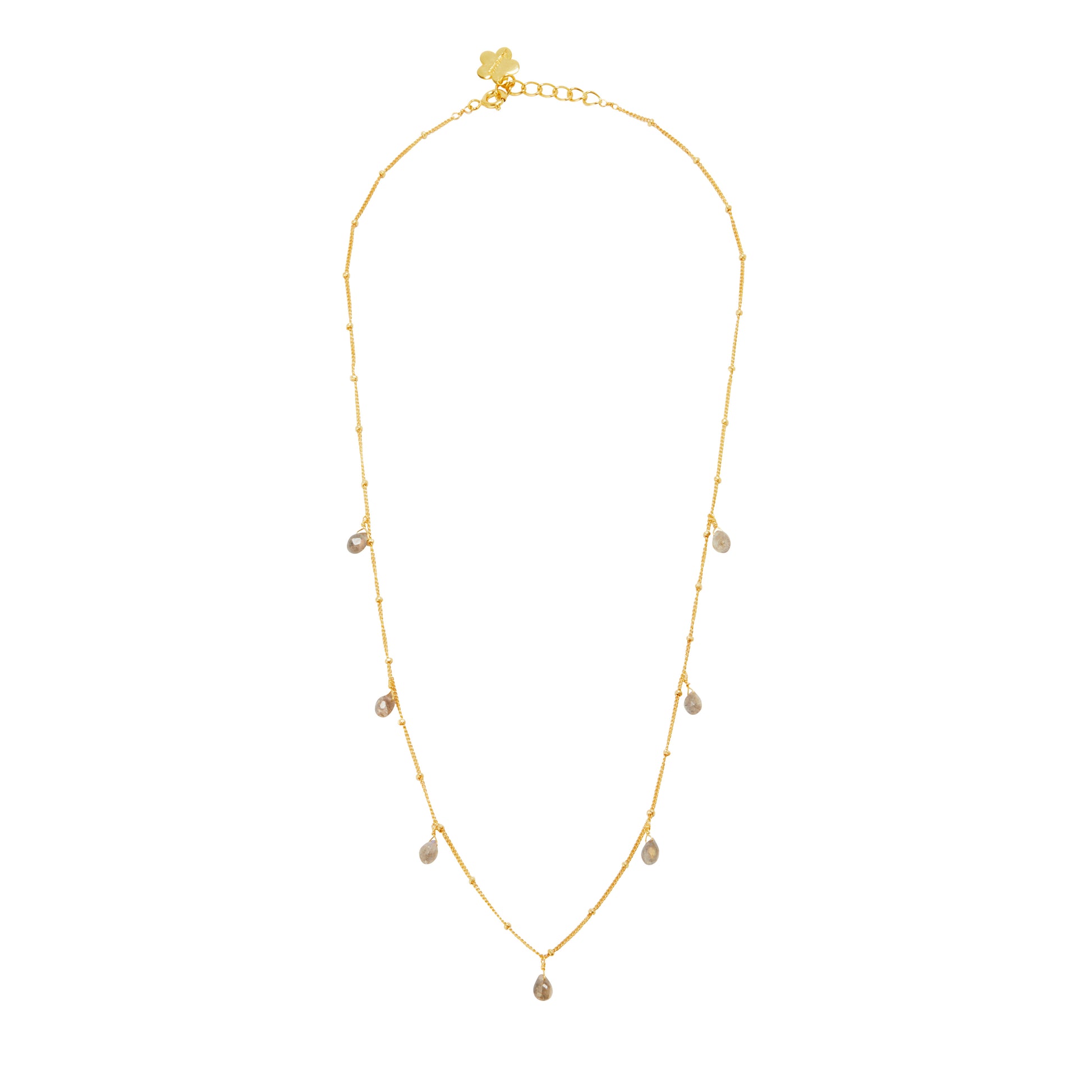 Pon tu imaginación a trabajar mientras utilizas todas las propiedades de estas piedras de labradorita genuinas decoradas en este magnífico diseño. La cadena es muy liviana y el collar se coloca justo en la clavícula para la mayoría.
