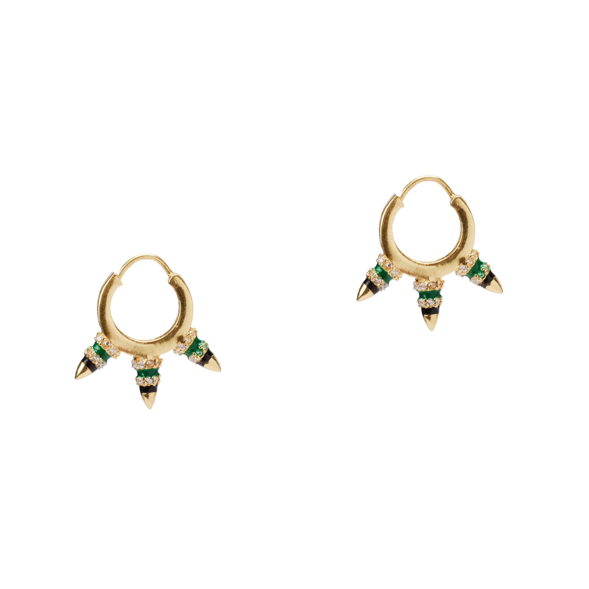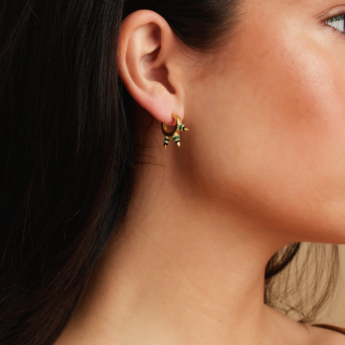 Los huggies con pinchos son el complemento perfecto para cualquier línea de aretes que elijas. Agregan ese cierto borde que le da a tu estilo una hermosa singularidad. Estos pequeños son livianos y están llenos de piedras brillantes y colores de esmalte brillantes.