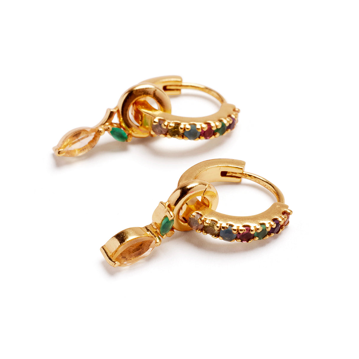 Lemon Zesty Charms on Rainbow Pave Huggie Set